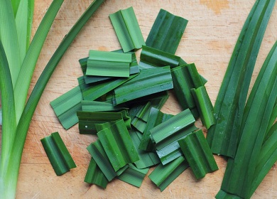 Pandan amaryllifolius is a tropical plant in Viet Nam, which is commonly known as pandan leaves and is used widely in Southeast Asian cooking as a flavoring. The characteristic aroma of pandan is caused by the aroma compound 2-acetyl-1-pyrroline, which may give white bread, jasmine rice and basmati rice (as well as bread flowers Vallaris glabra) their typical smell. The plant is rare in the wild but is widely cultivated. It is an upright, green plant with fan-shaped sprays of long, narrow, blade-like leaves and woody aerial roots. The plant is sterile, with flowers only growing very rarely, and is propagated by cuttings.