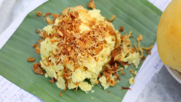 In addition, this sticky rice dish can also be varied with many toppings such as roasted sesame, peanuts, sesame salt, shredded coconut, green beans, ripe mango, creating a variety of flavors to suit each person.