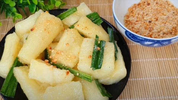 The cassava fibers soften quickly, so when cooking, do not use too much heat because it will cause the potatoes to become mushy, crushed and the coconut milk layer to burn easily. Cook over medium heat, stirring gently and evenly to help the potatoes soften, the coconut milk layer to be absorbed evenly and retain its natural fat. Cooking time is usually about 15-20 minutes, depending on the softness of the potatoes and the consistency of the coconut milk you want to achieve.